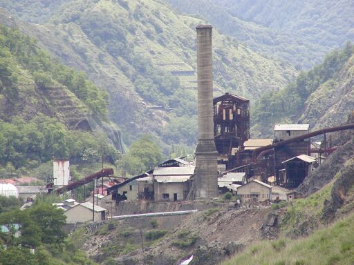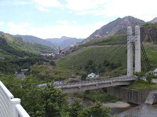松木川渓谷から見た精錬所の跡 |