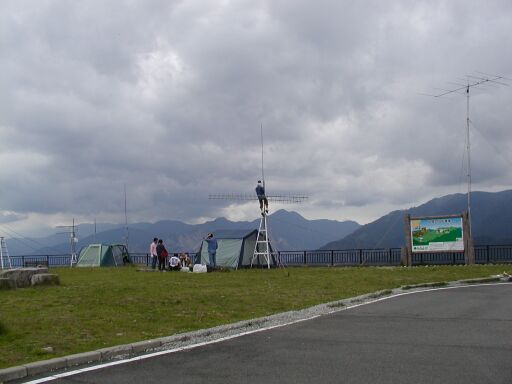 アマチュア無線のコンテストでもあったのか、アンテナとテントがが数本立っていました。 |