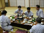 食後 なぜか一斉に携帯電話でメールを送信。