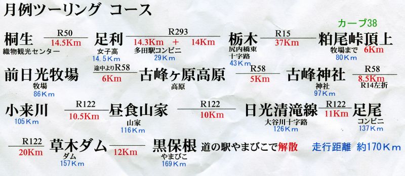 9月ツーリングのお知らせ 主催者:小椋 開催日 : 9月25日(日) 目的地 : 上野村 峠のうどん 藤屋さんへ名物うどんを食べにいきます。 (メニューは うどん 1品のみ ! 600円 ) 昼食予定の藤屋さんは突然に休業の場合があります。 その場合は南牧村の炭ラーメン or 炭ピザ 帰りは 不二同 入場料600円、 または 藤岡 自然史博物館 入場料500円 どちらかに寄る予定です。 集合場所: 桐生伊勢崎線 ビバホーム反対側 小僧寿し前 駐車場 出発時間: AM 8:00 参加できる方は担当者まで連絡をお願いします。 皆様の参加をお待ちしています 9月担当 小椋 |