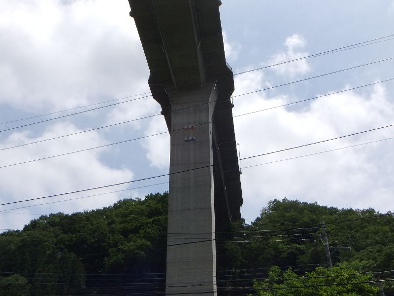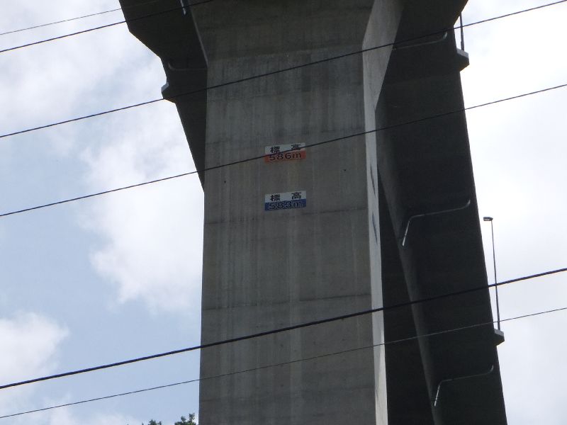 橋脚に「583m」と「586m」と書かれています