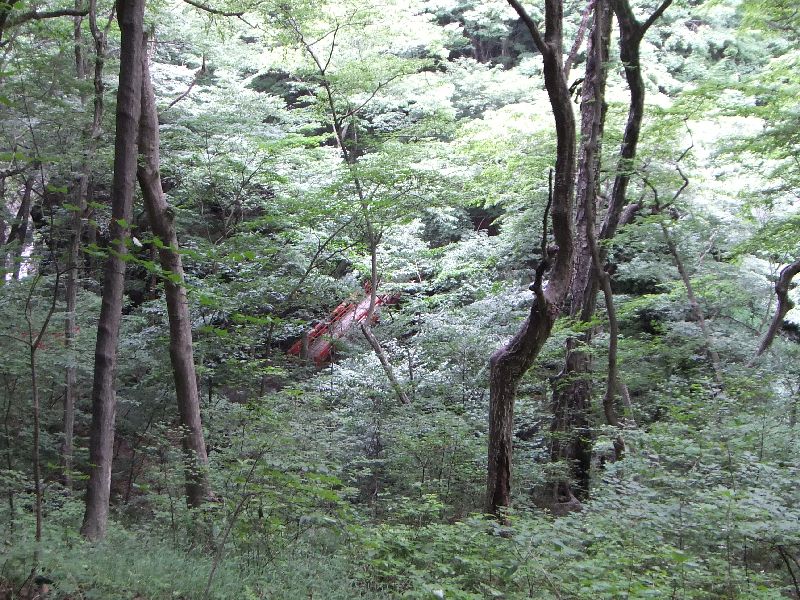 仕方が無いので、川向こうの「十二沢パーキング」から 500m少々の山道を抜けて 「鹿飛橋」へ