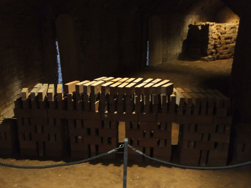 | 最後の焼成は16号窯を使用したそうで、その時の状態で火止めの仕切り壁が残されています |