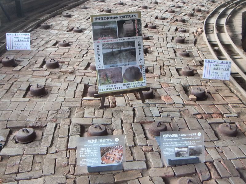 | 窯部分の内側と外側には 石炭を運ぶ為のレールが敷設されています。 |