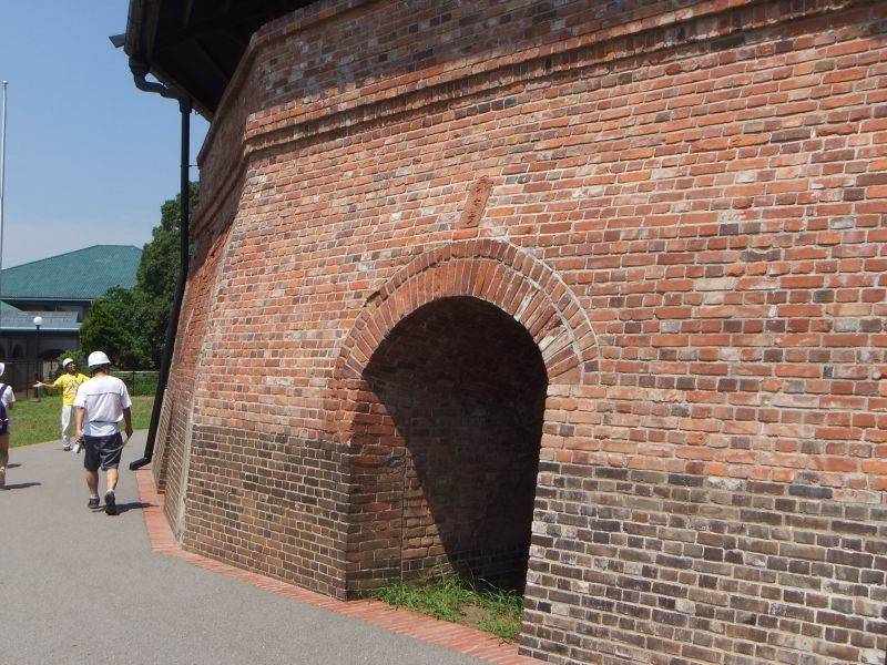 | 煉瓦の積み方も部分的に変わっていました。 また、窯(1階)部分の煉瓦が黒っぽいのは わざわざ焼成温度の高い煉瓦を選んで使用しているためとの事です。 |