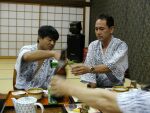 食後 なぜか一斉に携帯電話でメールを送信。