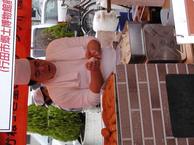 代表してゼリーフライを買う たむらさん