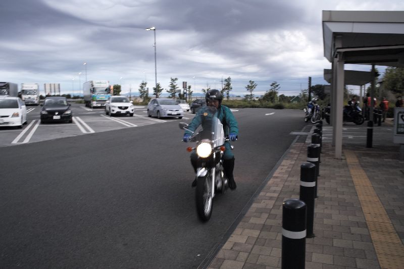 横川SAでカッパを着込み