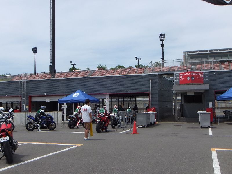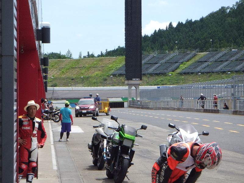 | 見ていると パドックまでバイクを入れても良さそうなので、グラをパドック裏に移動 |