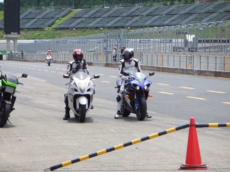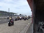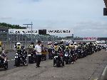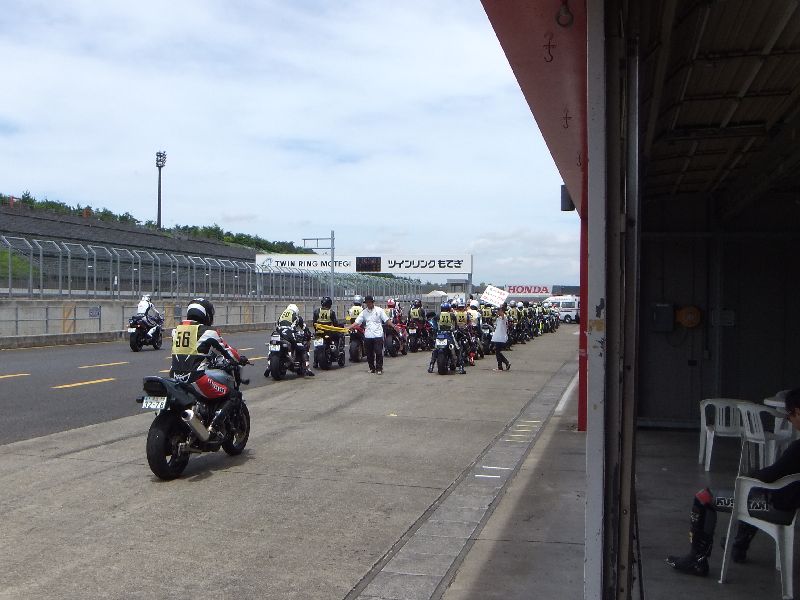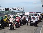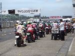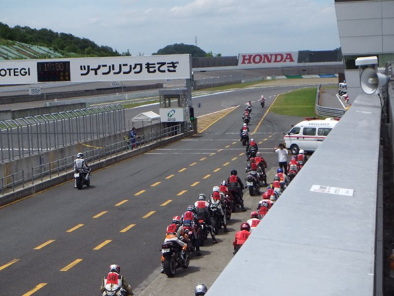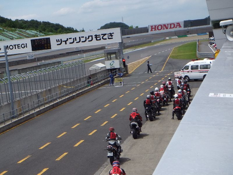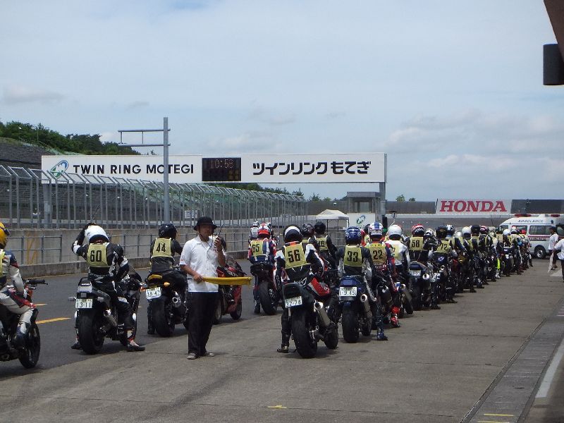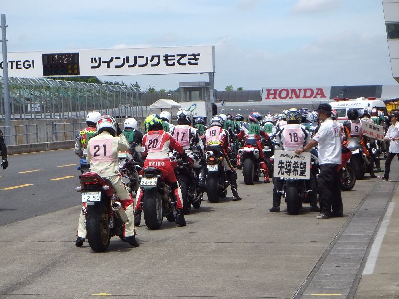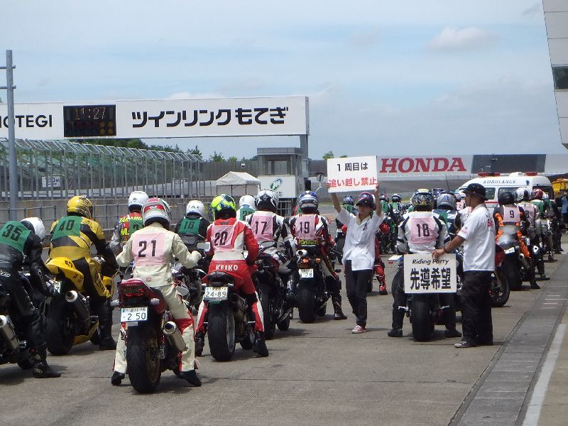 | RIDERS CLUBのライディングパーティ パドック前に並んで順にスタート 10人程度のグループに先導がつきます |