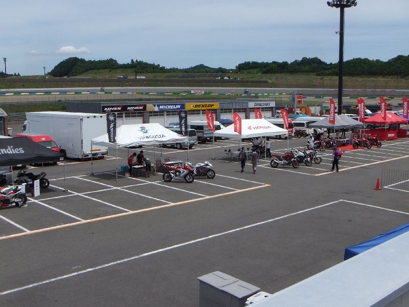 | パドックの裏?には バイクメーカのテントが... 何社かバイクの貸し出しをしていたようです。 |