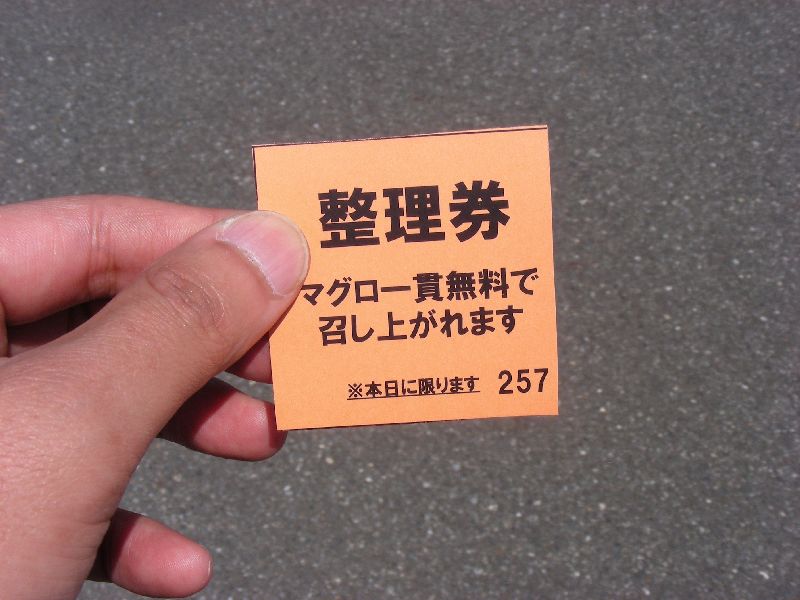 | まぐろの寿司の整理券をゲット! |