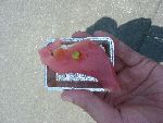 | スイカ模様のヘルメット ヘタまで有るのが良いですね。 |