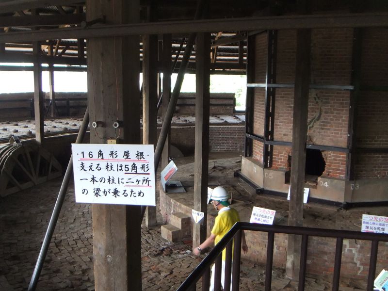 1号釜からは 耐震補強の為の梁が... |