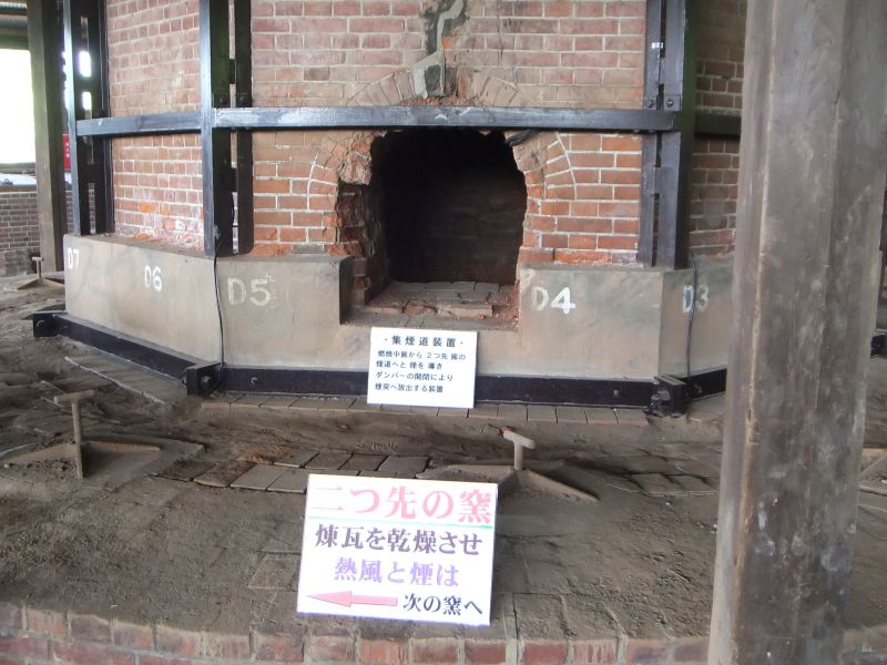 リブと呼ばれる 出っ張り部分を新聞紙で塞いで仕切りとし、前工程からの熱で紙が燃え 焼成前の煉瓦を熱風で乾燥させるそうです。 |