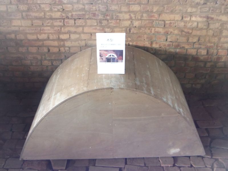 | 最後の焼成は16号窯を使用したそうで、その時の状態で火止めの仕切り壁が残されています |