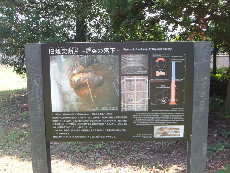 | こちらは 関東大震災時に崩落した煙突の残骸。 煙突の上半分は 関東大震災後に積み直されたそうです。 |