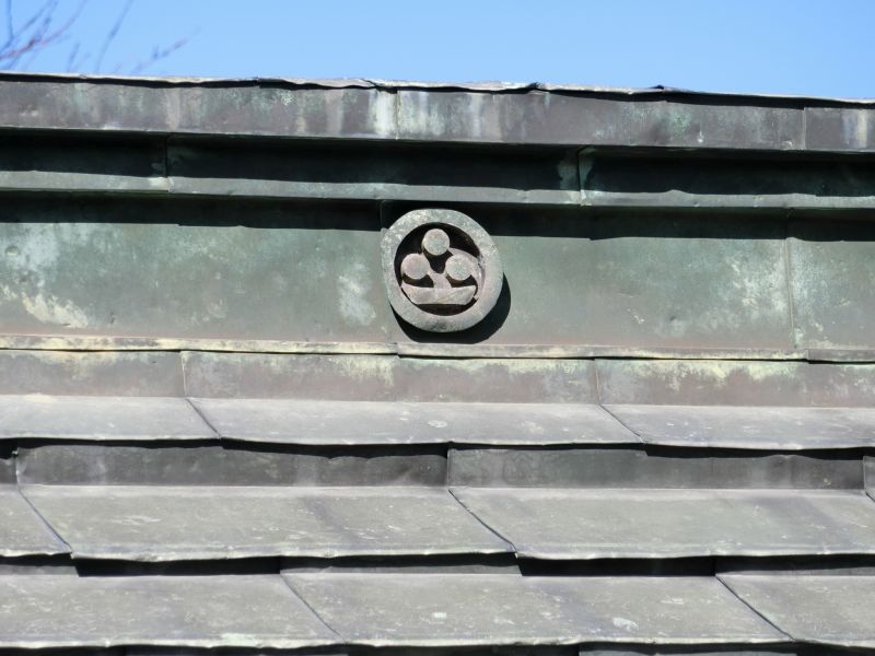 手水舎の屋根にも「三つ星に一文字(渡辺星)」が...